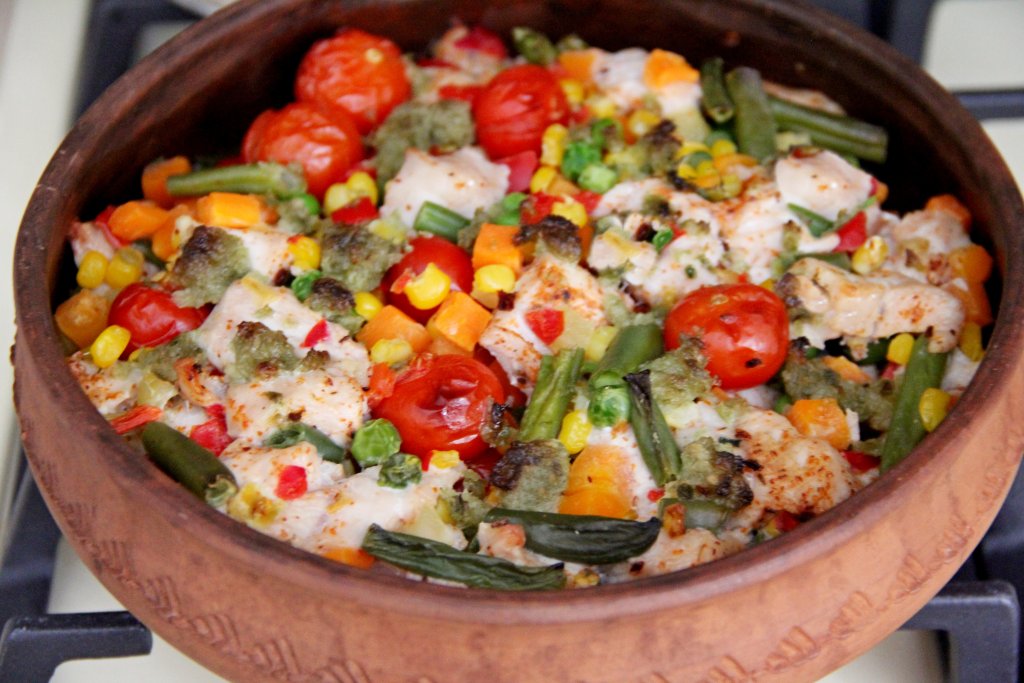 Я часто готовлю индейку, в основном использую индюшиное филе. Люблю это мясо и в отварном, и в запечённом виде. В этот раз решила приготовить индейку с замороженной мексиканской смесью в духовке. Блюдо получилось ярким, очень вкусным и сочным. Мексиканскую овощную смесь (в её состав входят болгарский перец, стручковая фасоль, морковь, кукуруза и горошек) можно купить практически в любом супермаркете. Очень удачный рецепт, ведь без лишних хлопот можно приготовить и мясо, и овощной гарнир к нему. Просто, сытно и вкусно, попробуйте!