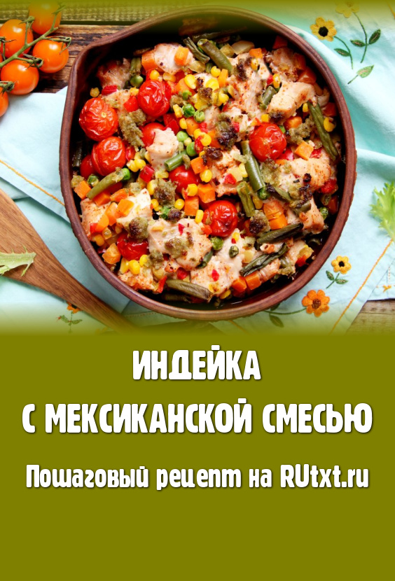 Накрыть форму фольгой и поставить в духовку, разогретую до 220 градусов. Запекать индейку с мексиканской смесью примерно 30 минут.