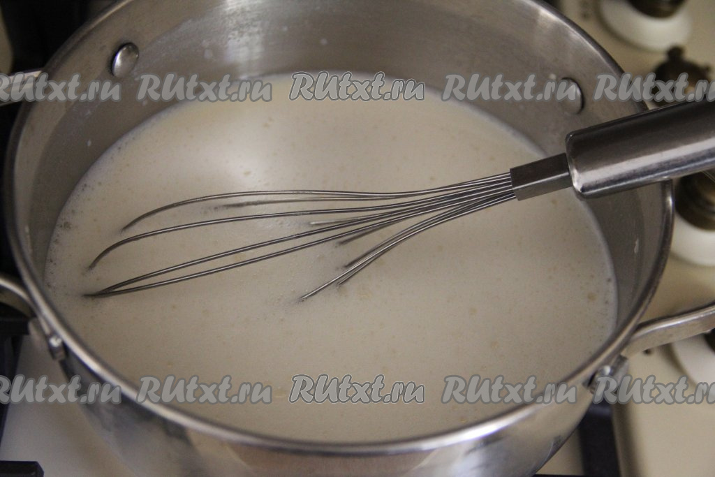 Перемешать массу венчиком и поставить на кастрюлю на средний огонь.