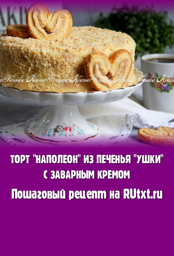 Торт "Наполеон" любят многие. Но на его приготовление обычно требуется достаточно много времени. А я предлагаю "ленивый" вариант приготовления торта "Наполеон" из покупного слоёного печенья "Ушки" и заварного крема. Тортик получается очень вкусным, нежным, пропитанным, в меру сладким. Готовится он совсем несложно, но нужно дать ему хорошо пропитаться в холодильнике. Приготовьте "Наполеон" без выпечки по этому рецепту и у вас будет великолепный десерт, который можно подать к чаю и в будни, и в праздники!