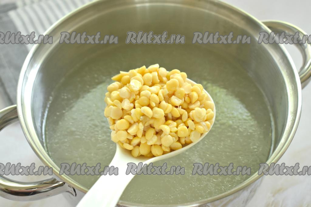 Замачивание гороха на ночь (или на достаточно длительное время) позволяет сократить время его варки в супе.