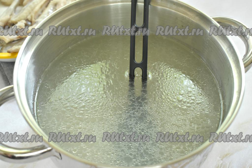 Любые части курицы моем, кладём в кастрюлю, заливаем 1,5-1,7 литрами воды и ставим на огонь. После закипания убираем с поверхности бульона пену и, уменьшив огонь, варим куриное мясо минут 35-40. Затем достаём кусочки курицы из кастрюли, даём немного остыть, отделяем мясо от костей. Бульон, если нужно, процеживаем, возвращаем в кастрюлю, по вкусу солим, добавляем мясо, нарезанное на кусочки.