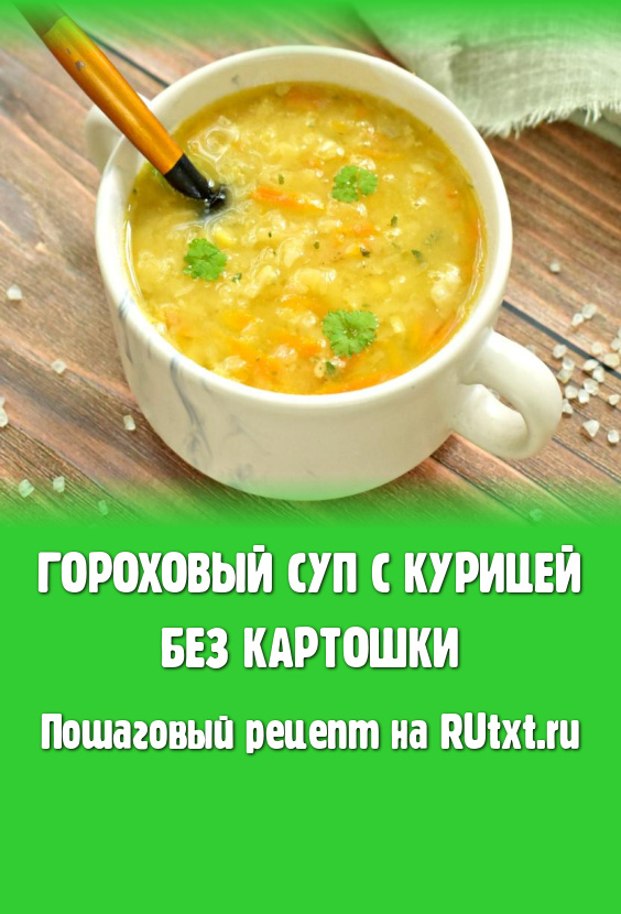Вкусный, насыщенный гороховый суп всегда вносит приятное разнообразие в повседневное меню. Рецептов этого блюда немало. В этот раз предлагаю сварить гороховый суп с курицей без добавления картошки. Это первое блюдо получается сытным, вкусным и, благодаря отсутствию картофеля, достаточно лёгким. Приготовьте суп по этому рецепту и он, наверняка, понравится не только взрослым, но и детям.