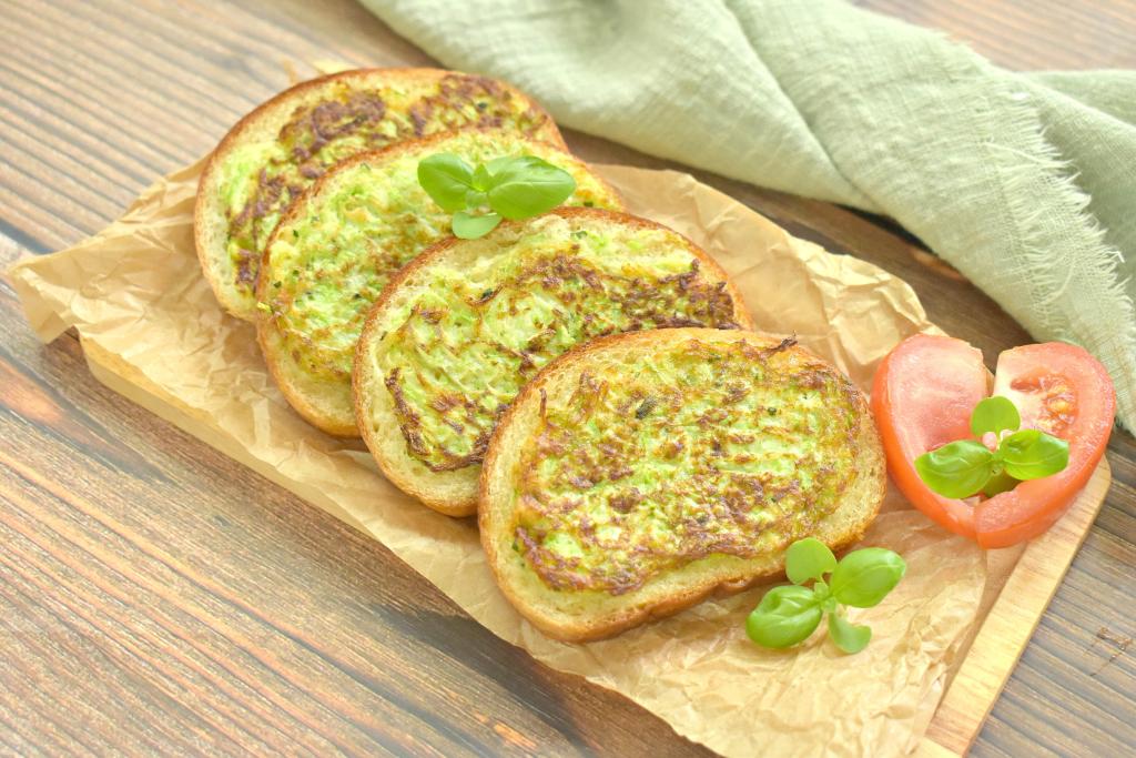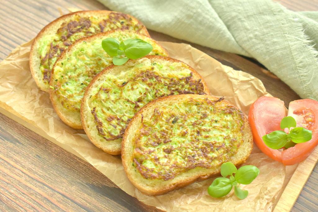 Вкусные, сочные гренки с кабачком с лёгкой корочкой снаружи и приятным мякишем внутри подаём к столу тёплыми или остывшими, дополнив, по желанию, сметаной.