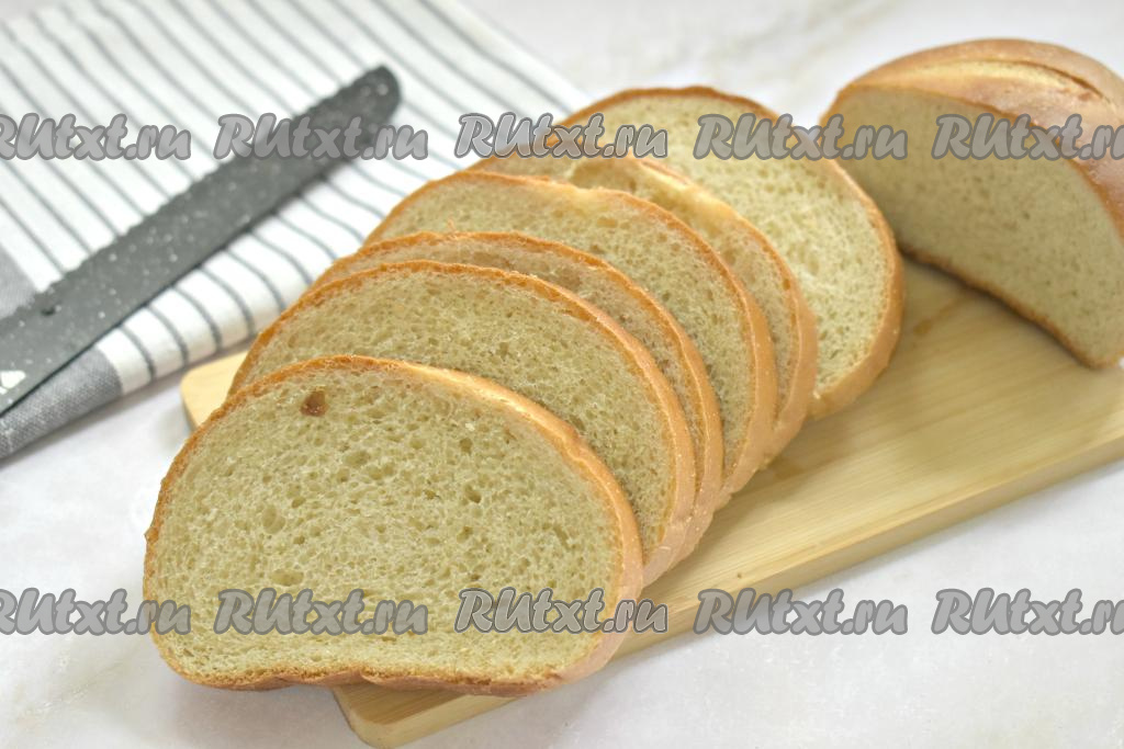 Батон нарезаем на ломтики толщиной примерно 1 сантиметр.