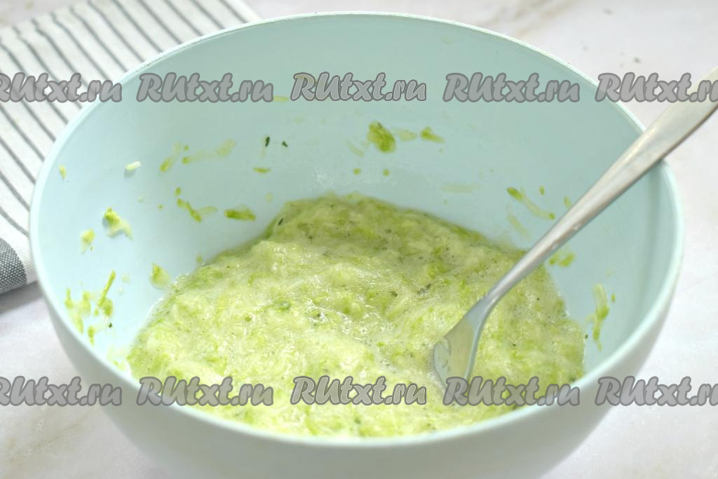 Хорошо перемешиваем кабачковую массу, она получится нежной и не очень густой.