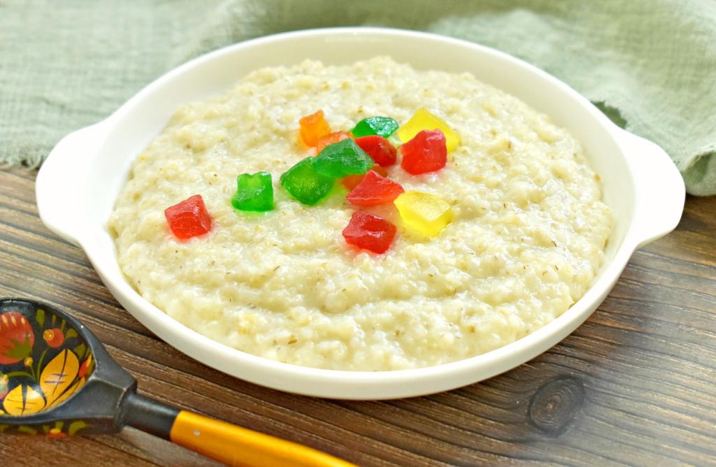 А затем раскладываем по тарелкам, украшаем на своё усмотрение (я использовала цукаты) и подаём к столу. Ячневая каша, сваренная на воде и молоке, получилась в меру густой, нежной, вкусной. Угощайтесь!