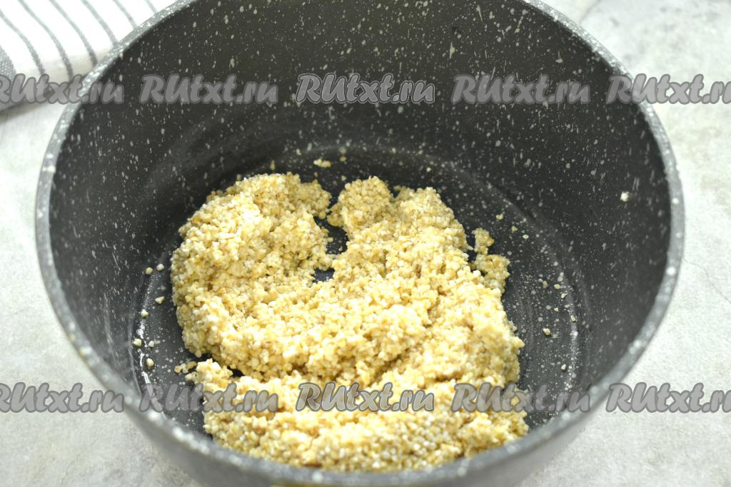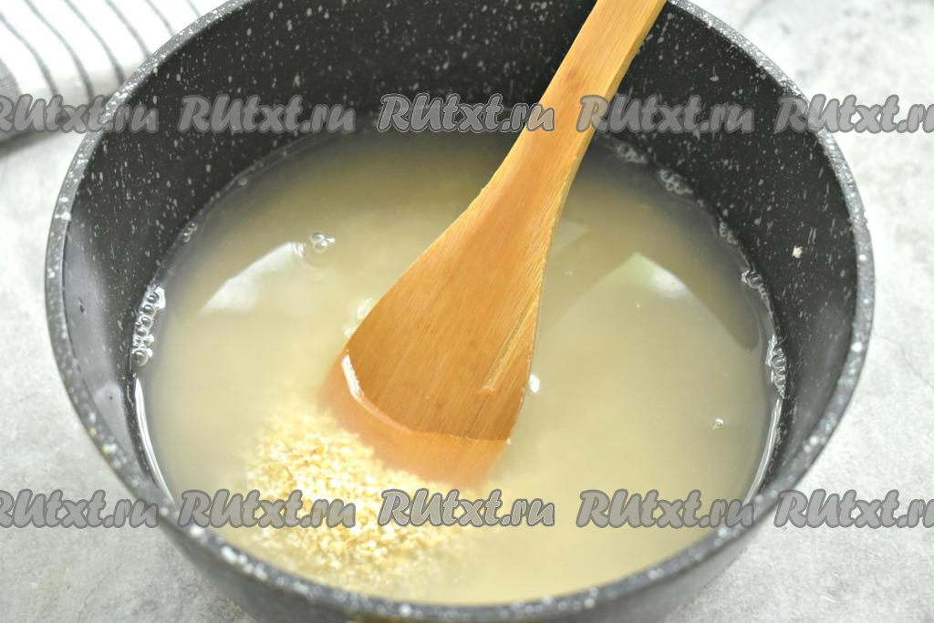 Заливаем ячневую крупу водой комнатной температуры и ставим на огонь.