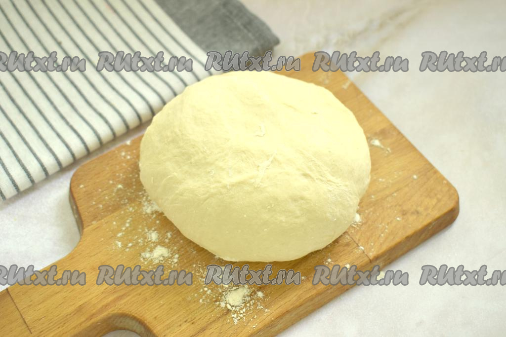 Когда образуется комок теста, продолжаем замешивать тесто руками. Тесто должно получиться мягким, липнуть к ладоням оно не должно. Миску с тестом затягиваем пищевой плёнкой (или прикрываем полотенцем) и на 1 час убираем в тёплое место для подъёма (до увеличения в объёме раза в 2-3).