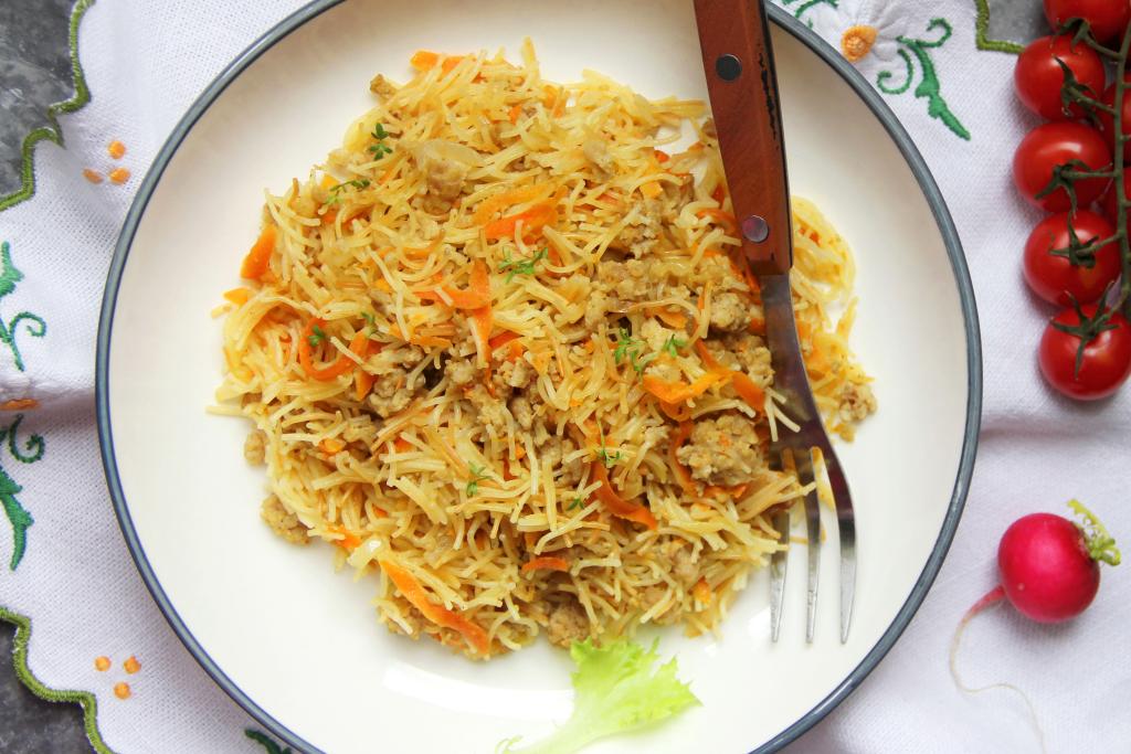 Если вы хотите достаточно быстро подать к столу вкусное, аппетитное и сытное блюдо, тогда приготовьте жареную вермишель с фаршем на сковороде. Вермишель предварительно обжаривается, поэтому она не слипается в процессе варки. Фарш можно взять из курицы, говядины, индейки, свинины или смешанный. Уверена, это простое блюдо понравится всей семье!