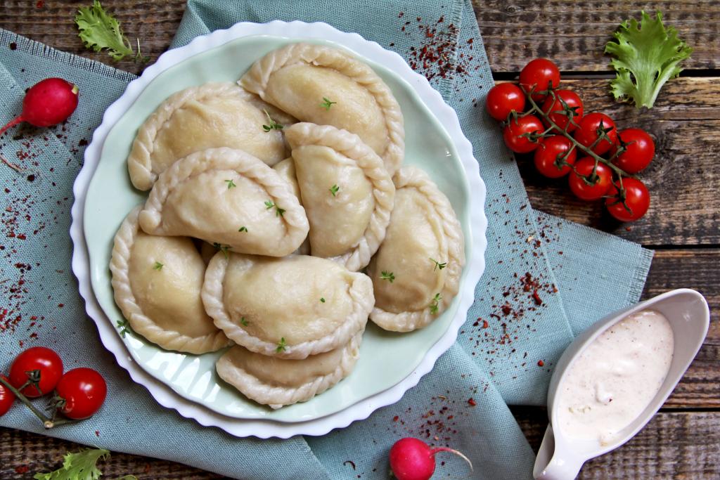 Вкусные, аппетитные колдуны, приготовленные с капустой и фаршем, подать к столу горячими со сметаной.