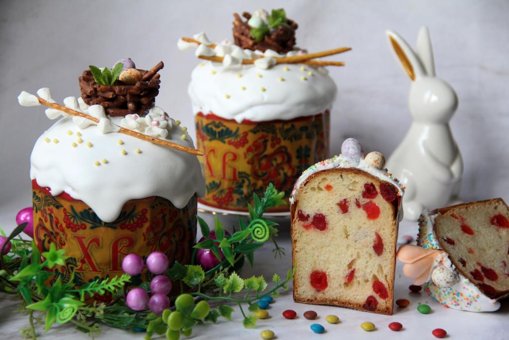 А вот как выглядит пасхальный кулич с вяленой вишней в разрезе.
