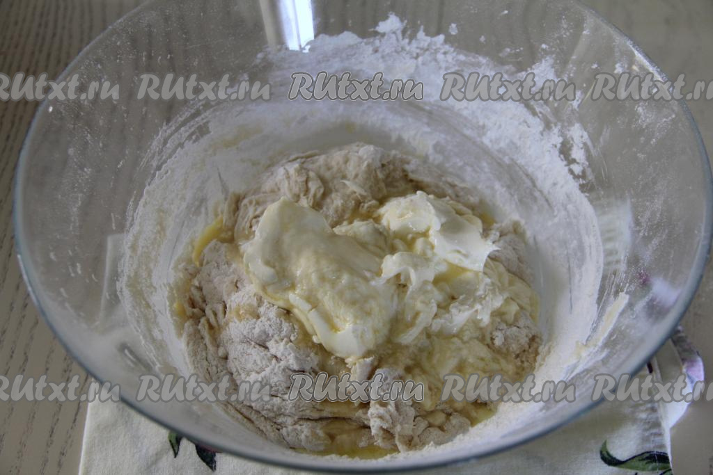 Перемешать тесто ложкой, добавить сливочное масло комнатной температуры.