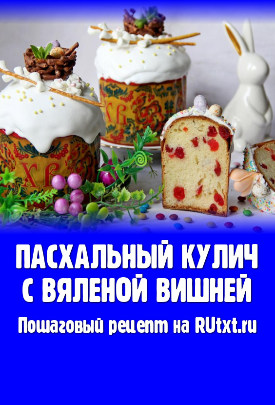 Предлагаю к праздничному столу испечь пасхальные куличи с вяленой вишней. Тесто замесим на кефире с добавлением сухих дрожжей и сливочного масла. Тесто получается нежным, приятным в работе, а куличи из него выходят воздушными, мягкими, сладкими и ароматными. Вяленая вишня приятно дополняет вкус этой сдобной выпечки. Украсить пасхальные куличи можно любой глазурью и цветной посыпкой.