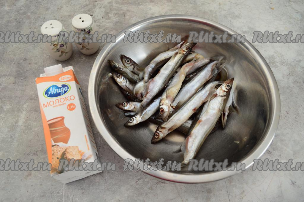Мойву, если она заморожена, заранее разморозить. Молоко можно взять любой жирности.