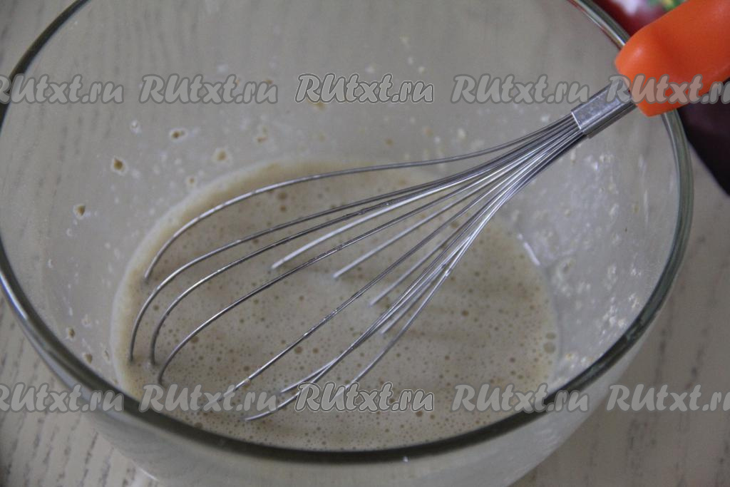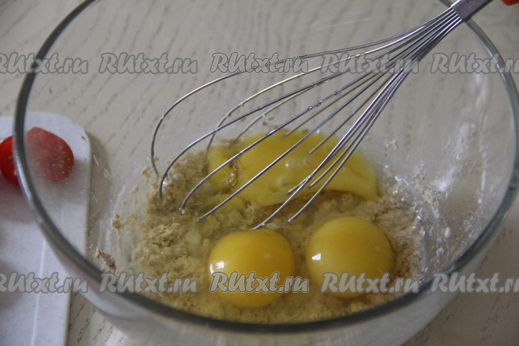 Сюда же вбить яйца, перемешать венчиком.