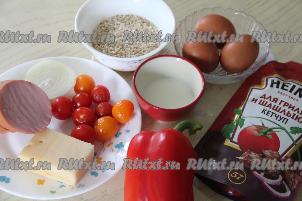 Подготовить продукты. Из болгарского перца удалить семена. Лук очистить. Вымыть лук, помидоры и перец. Овсяные хлопья можно взять любые, их нужно перемолоть в муку в измельчителе. Для приготовления этой пиццы можно использовать и готовую овсяную муку.
