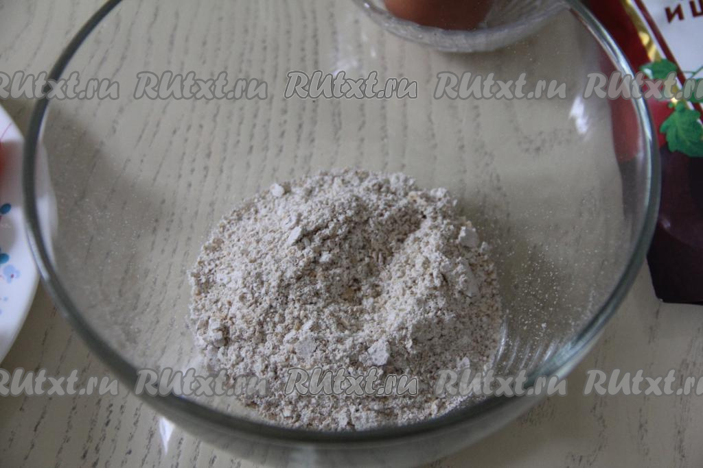 В достаточно глубокую миску всыпать овсяные хлопья, перемолотые в муку (или овсяную муку), добавить соль и молоко.