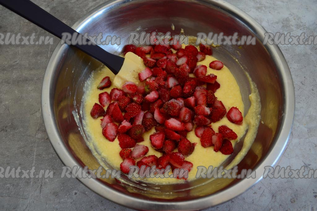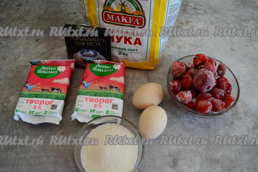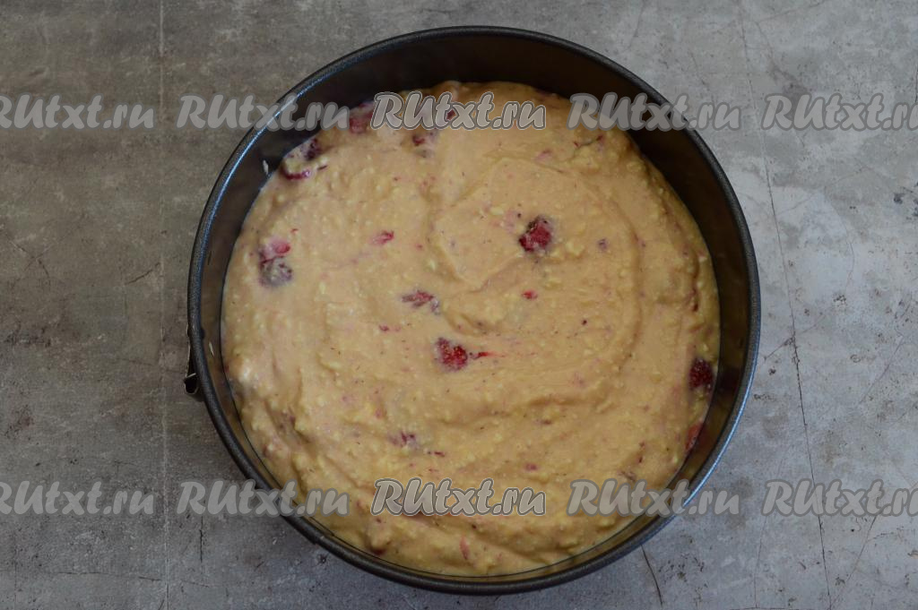 Возможно, вам понадобится добавить в тесто чуть больше или меньше муки, так как творог может быть сухим или влажным, замороженные ягоды клубники тоже могут иметь больше или меньше жидкости. Так что, добавляя муку, ориентируйтесь на консистенцию замешиваемого теста для запеканки.