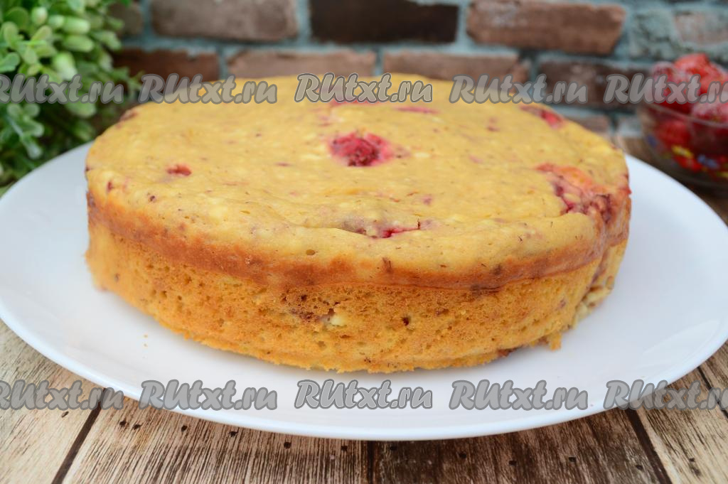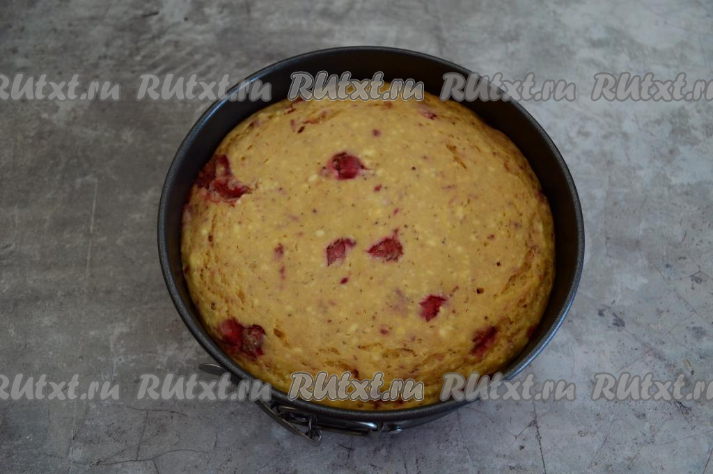 Поставить форму в духовку, разогретую до 180 градусов. Выпекать творожную запеканку с замороженной клубникой минут 40.