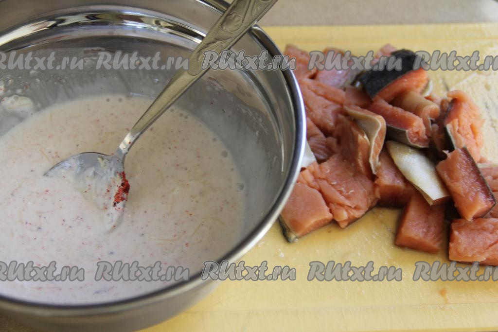 Филе горбуши нарезать на кусочки.