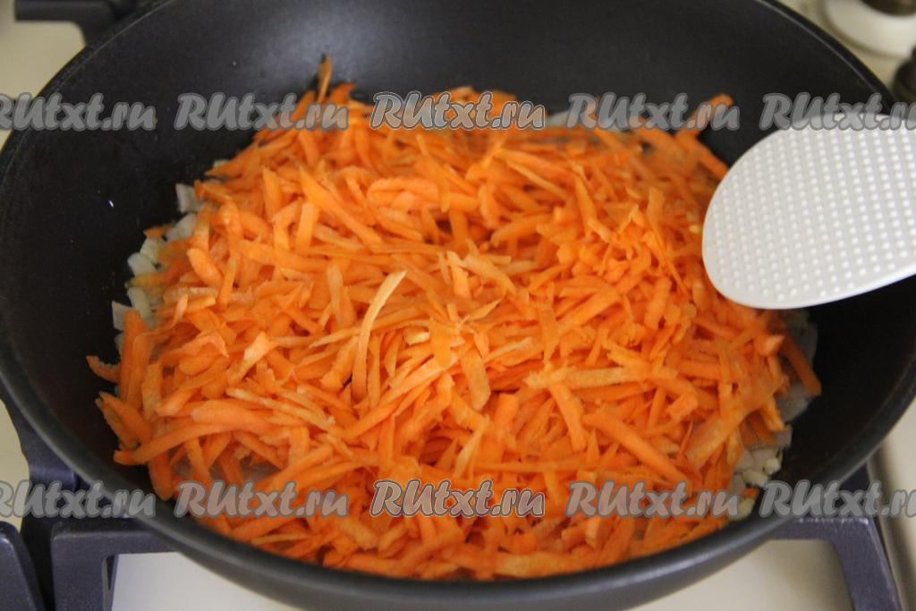 Обжарить овощи в течении 5-7 минут (до мягкости моркови), иногда помешивая.