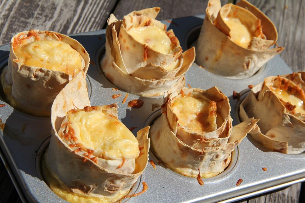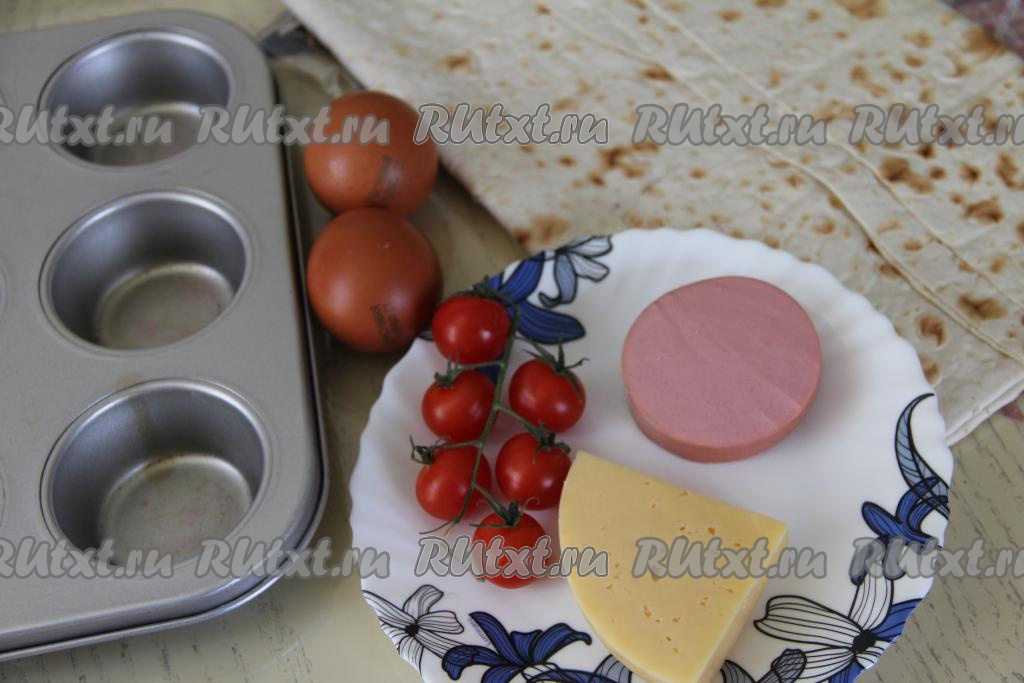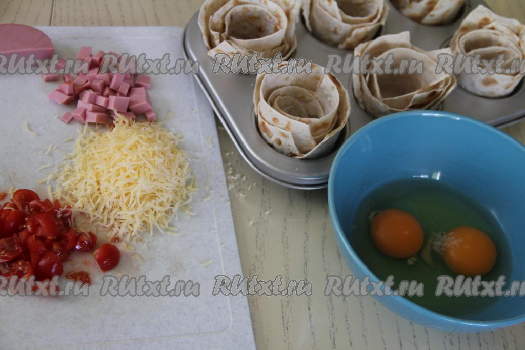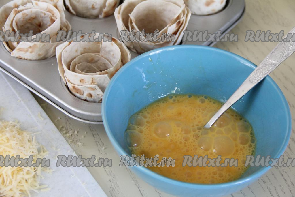 Равномерно разлить яичную массу по 6 формочкам с лавашом.