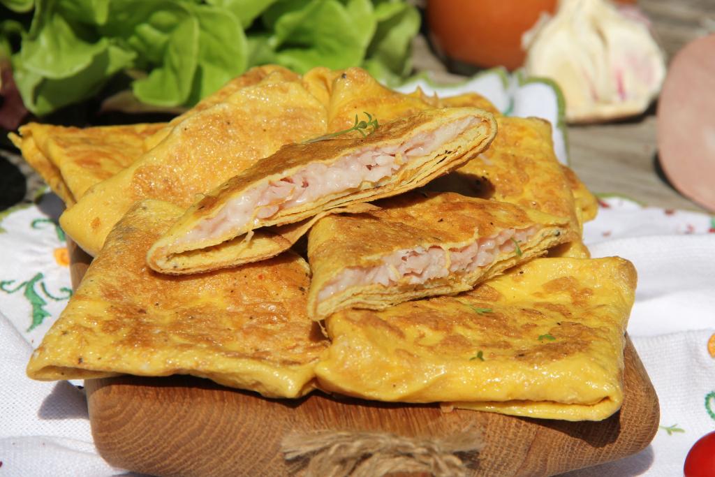 Предлагаю приготовить нежнейшие, вкусные, аппетитные яичные блины, приготовленные с ветчиной и сыром на сковороде. Рецепт несложный. Основой этого блюда являются блинчики, приготовленные из яиц, в них и заворачиваются ветчина и сыр. Это аппетитное блюдо можно подать и на завтрак, и к ужину.
