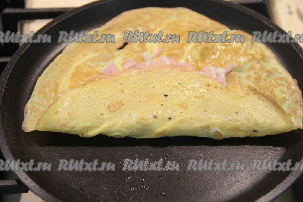 Сразу загнуть край яичного блина на начинку.