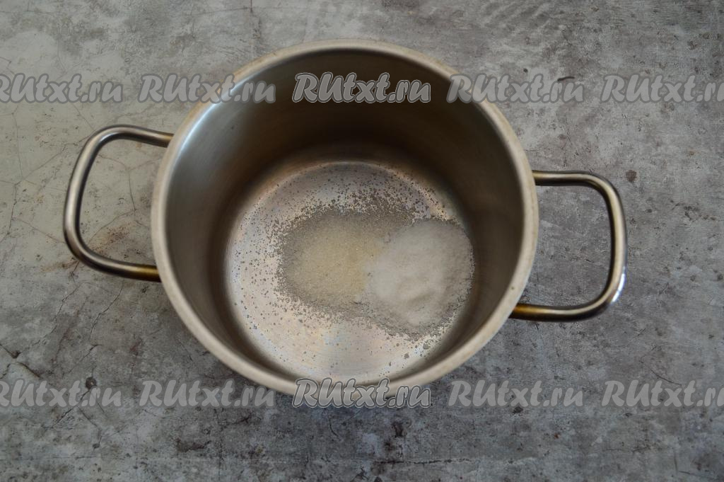 Первым делом нужно приготовить рассол. Для этого в подходящей кастрюльке нужно соединить соль и сахар. Влить воду и поставить на огонь. Когда вода закипит, помешивая, проварить рассол минуты 2 (кристаллы соли и сахара должны раствориться). Выключить огонь, накрыть кастрюльку крышкой и оставить рассол остывать до комнатной температуры.
