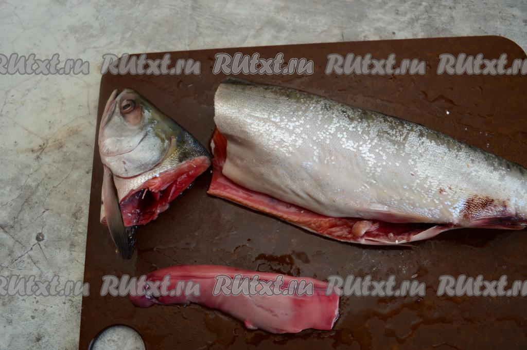 У горбуши отрезать голову, разрезать брюшко.