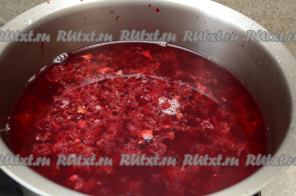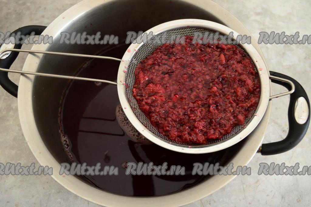 В результате процеживания в кастрюле окажется морс без косточек, а в сите останется практически сухой жмых, который можно выбросить.
