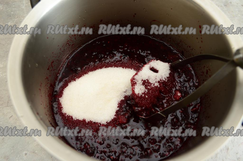Перетереть толкушкой ежевику с сахаром.