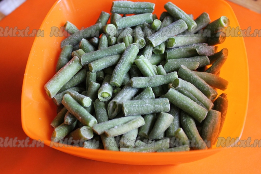 Фасоль стручковую замороженную забросить в кипящую воду.
