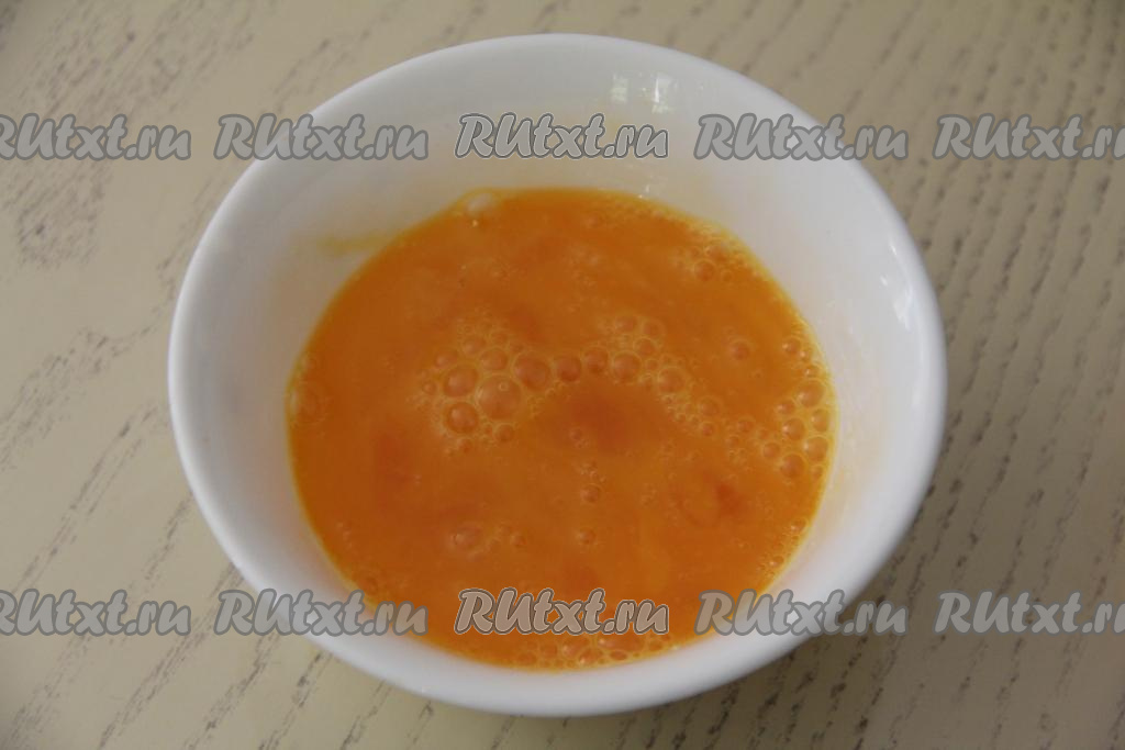 Долго взбивать не надо, как только яичная смесь станет однородной, можно прекратить взбивать.