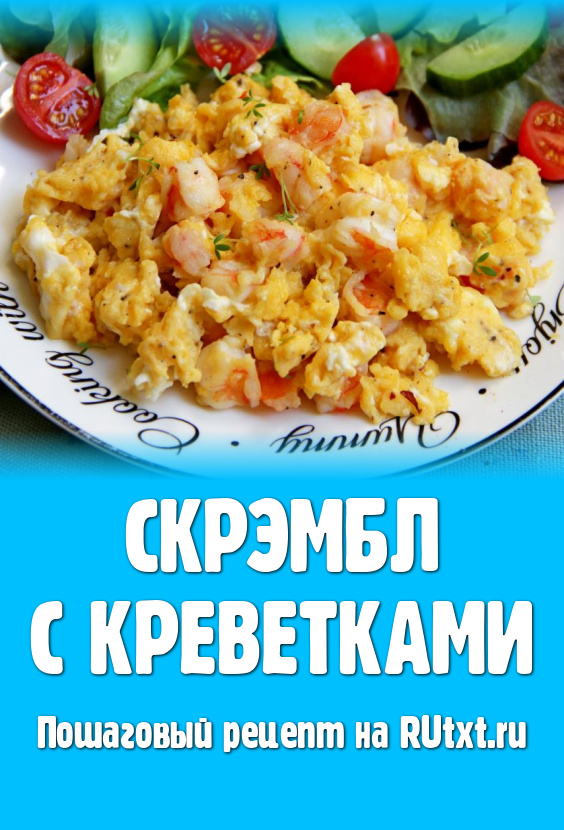 Скрэмбл, по сути, это яичница-болтунья, которая может готовиться с добавлением сыра, различных овощей, зелени. В этот раз решила приготовить скрэмбл с креветками. Блюдо получилось аппетитным, очень вкусным и достаточно сытным. Его можно подать и на завтрак, и в качестве перекуса. Готовится скрэмбл за считанные минуты и сразу подаётся к столу. Дополнить его можно нарезкой из свежих овощей, тостами или просто кусочком хлеба.