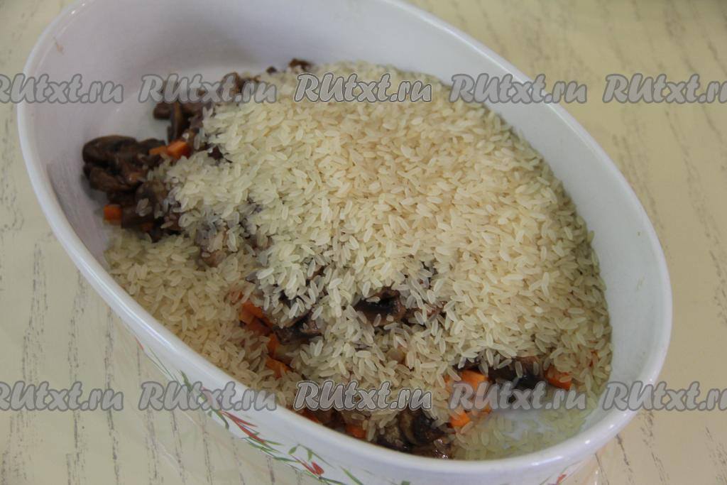 Затем всыпать рис.