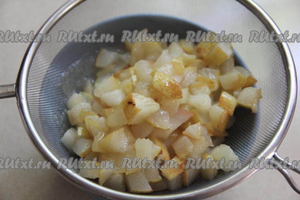 Затем откинуть груши на сито, чтобы стекла лишняя жидкость. Дать немного остыть.