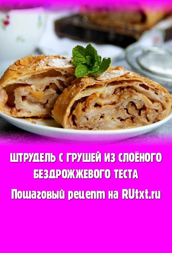 Нежный, ароматный штрудель с грушей, приготовленный из слоёного бездрожжевого теста, подать к чаю или кофе.