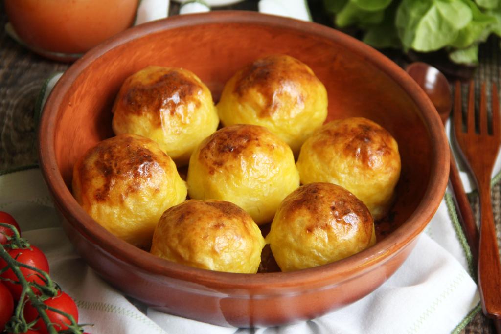 Запекать картофельные шарики с фаршем в духовке, разогретой до 180 градусов, минут 30 (до красивой золотистой корочки). Нежные, сочные, аппетитные шарики горячими подать к столу.