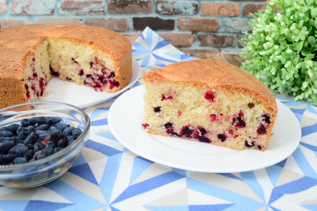 А вот как выглядит шарлотка с жимолостью в разрезе. Пирог получается в меру сладким, аппетитным и очень вкусным. Угощайтесь!