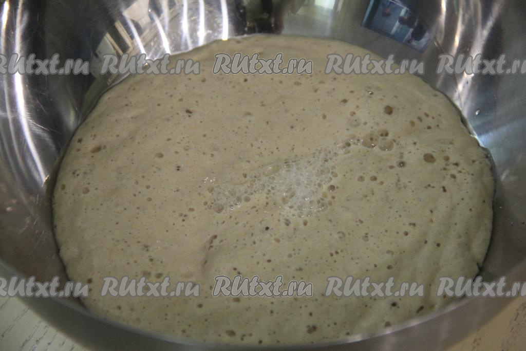 Опара поднимется и запузырится. Это значит, что дрожжи заработали и начался активный процесс брожения.