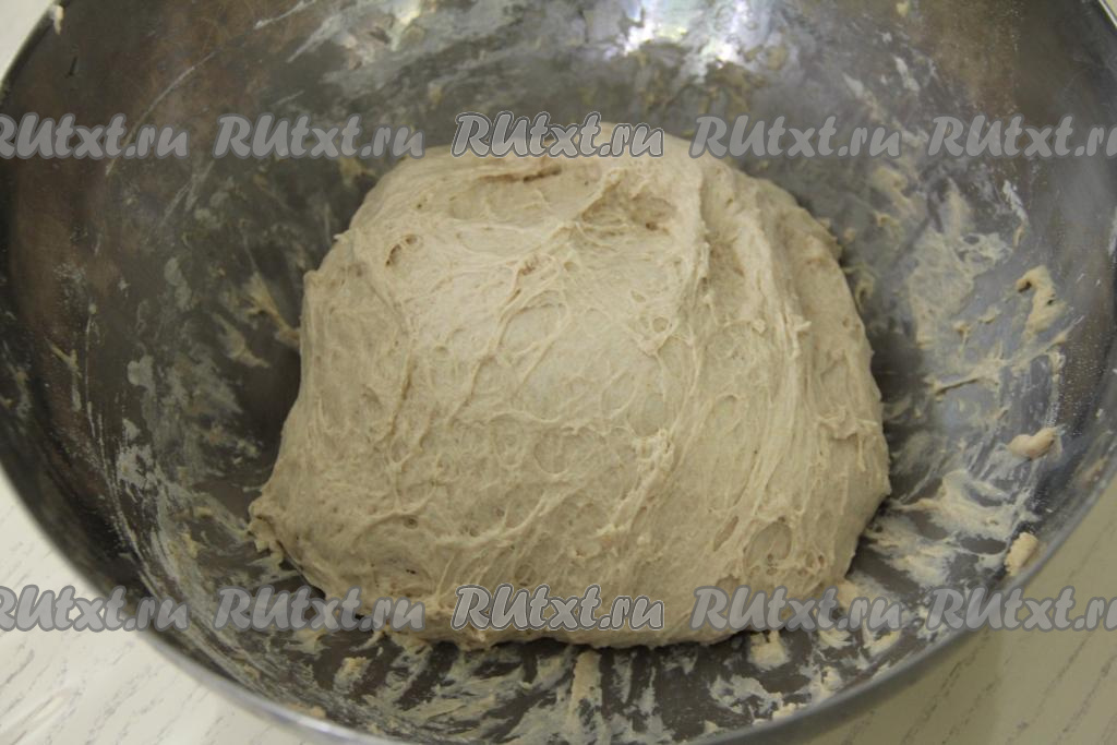 Тесто с каждым разом будет становиться более эластичным и нежным. По истечении 1,5 часов тесто округлится и хорошо увеличится в объёме.