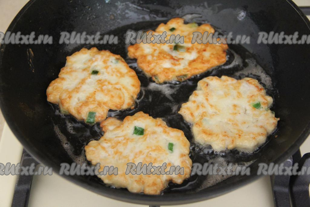 Жарить рубленные котлеты из куриной грудки на среднем огне с двух сторон до золотистого цвета.