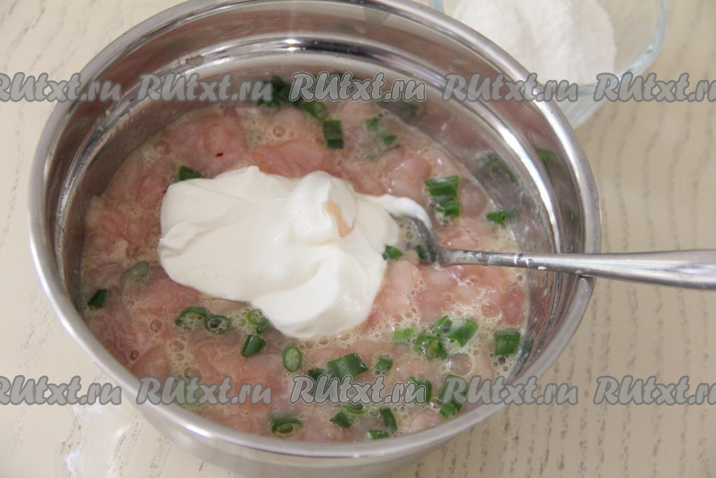 Если фарш получился жидковатым (многое зависит от величины яиц, качества муки, жирности сметаны), тогда добавьте ещё немного муки, чтобы фарш стал нужной густоты.