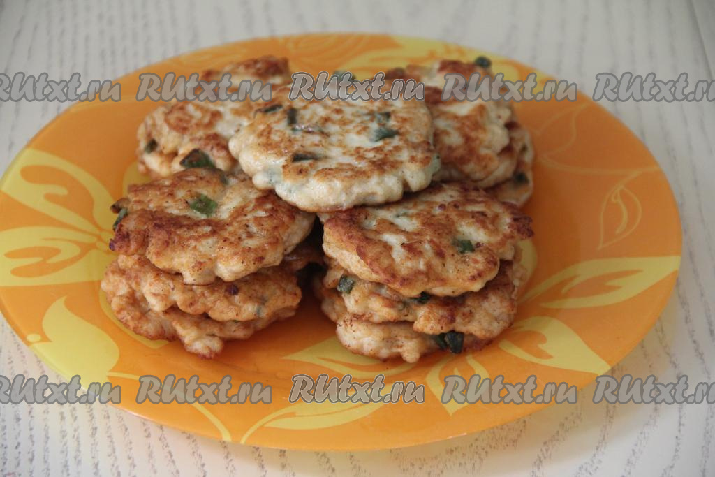 Хорошо прогреть в сковороде растительное масло, затем выкладывать по 1 столовой ложке рубленного куриного фарша в виде круглых котлет.
