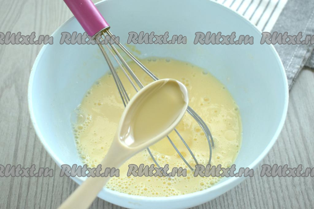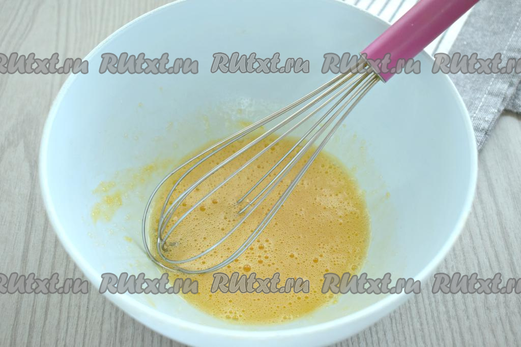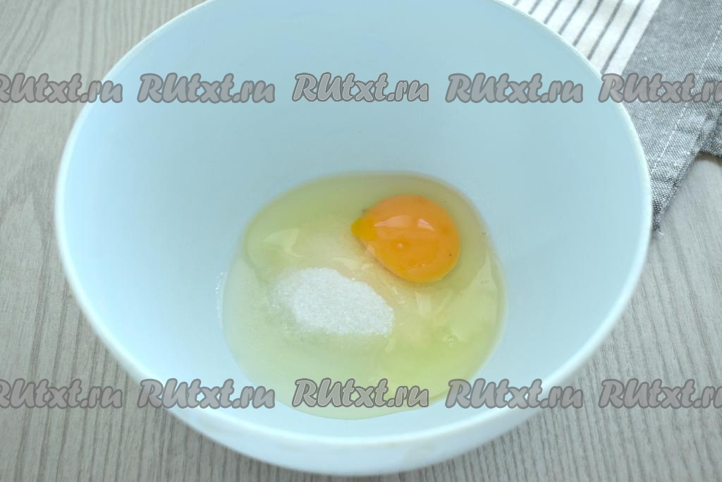 Взбиваем содержимое миски до однородности. Долго взбивать яйцо с сахаром не нужно.