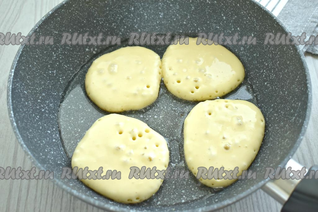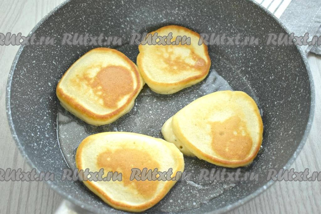 Разогреваем на сковороде растительное масло, затем выкладываем по 1 столовой ложке теста, формируя оладушки.