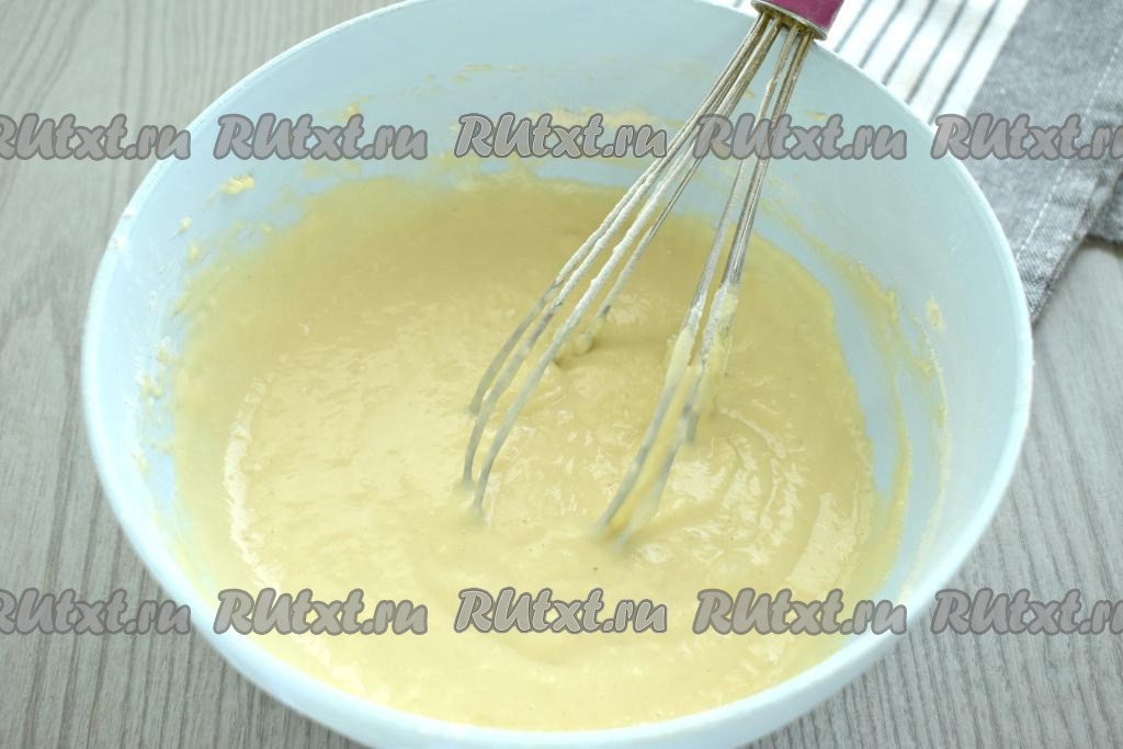 Добавляя муку, учитывайте, что тесто для оладий должно получиться однородным, напоминающим сметану средней густоты.