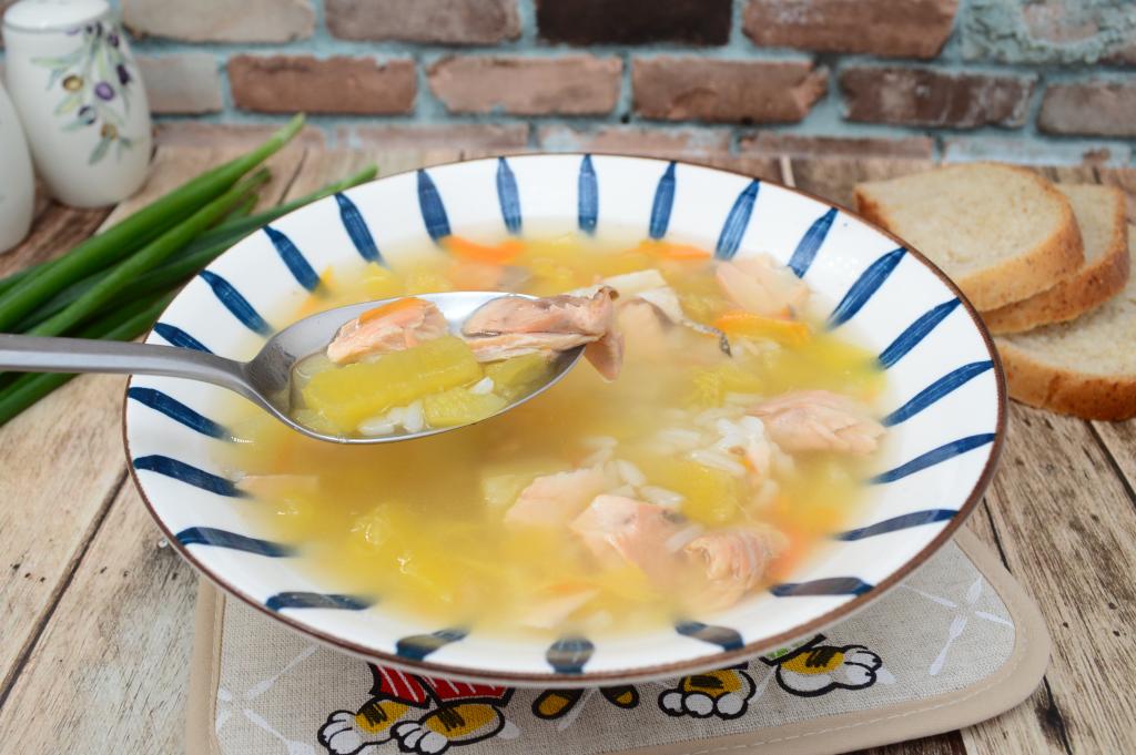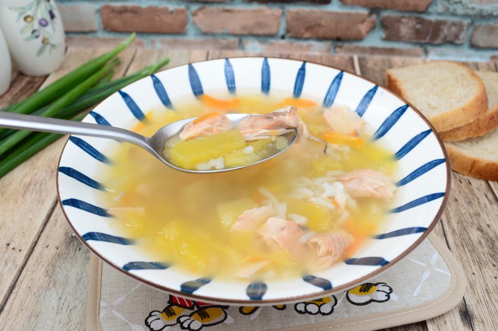 Аппетитный, вкусный, достаточно наваристый суп, сваренный с консервированной горбушей и рисом, разливаем по тарелкам и горячим подаём к столу. Это простое блюдо отлично разнообразит повседневное меню, попробуйте!